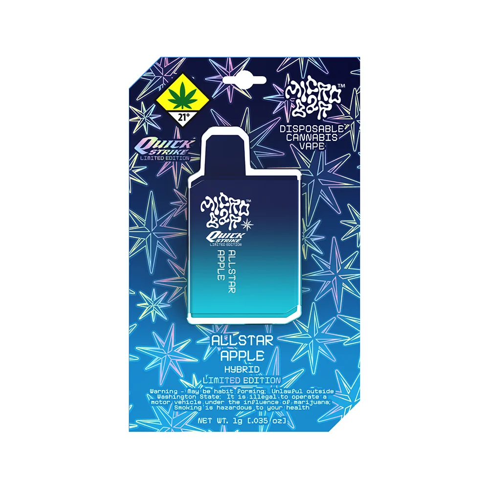 Crafted with high-quality live resin extract and reliable disposable hardware, Micro Bar Allstar Apple delivers consistency from the first inhale to the final puff.