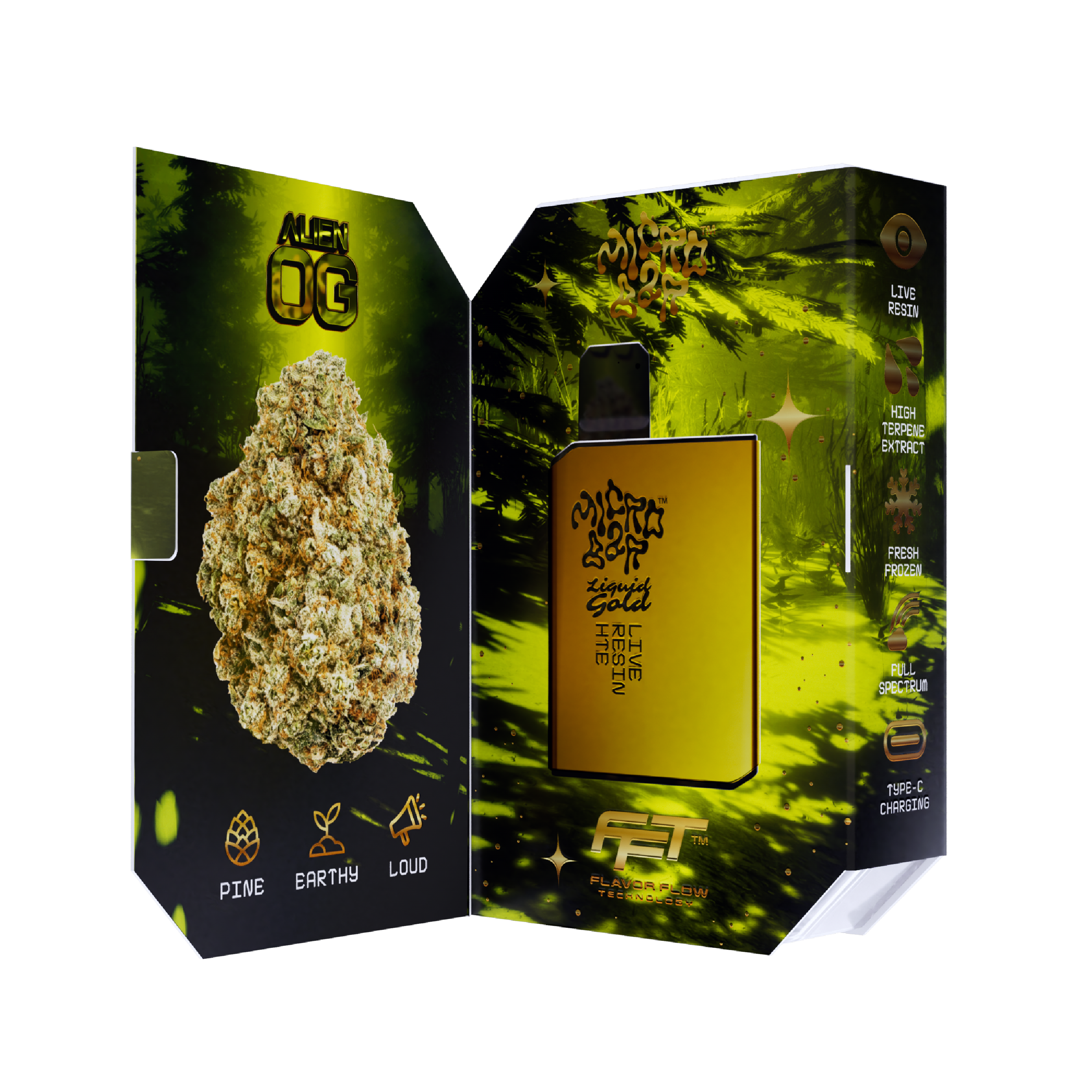 What makes Micro Bar Alien OG truly stand out is its live resin formulation. Unlike standard distillates, live resin is made from freshly harvested, flash-frozen cannabis plants. This process locks in the plant’s original terpene profile, resulting in: