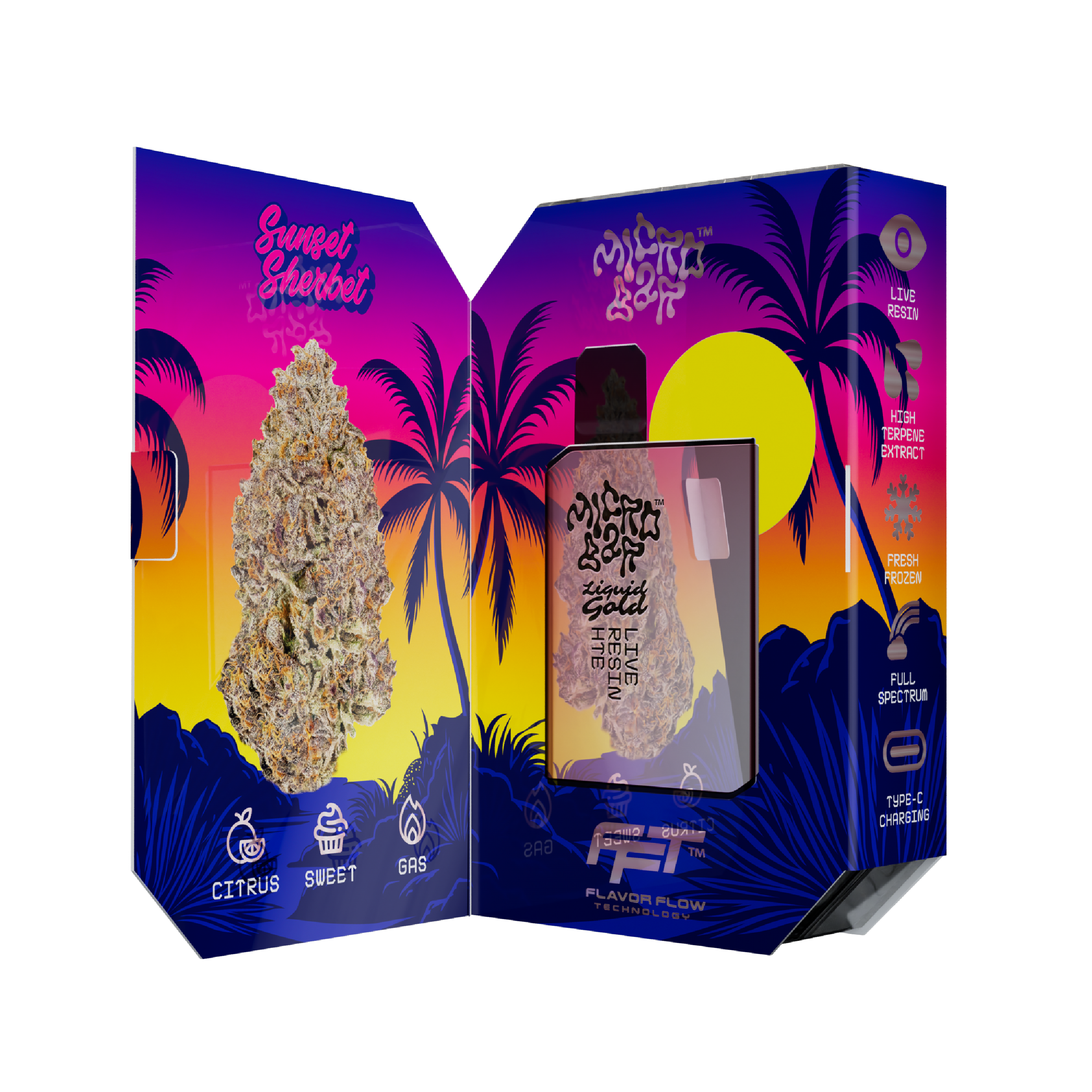 Sunset Sherbet is known worldwide for its smooth, dessert-inspired flavor and balanced character. Micro Bar’s live resin extraction process preserves the natural terpene profile of the strain, resulting in a rich and authentic vaping experience.